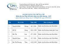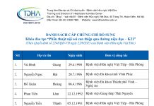 Danh sách giảng viên và các học viên được cấp chứng chỉ các khóa...