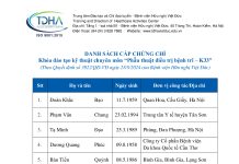 Danh sách cấp chứng chỉ khóa đào tạo kỹ thuật chuyên môn Phẫu thuật...