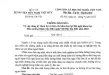 Ngày 21/4/2022, Bệnh viện Hữu nghị Việt Đức đã gửi Thông báo số 909/TB – VĐ (Thông báo số 1) về việc đăng ký...
